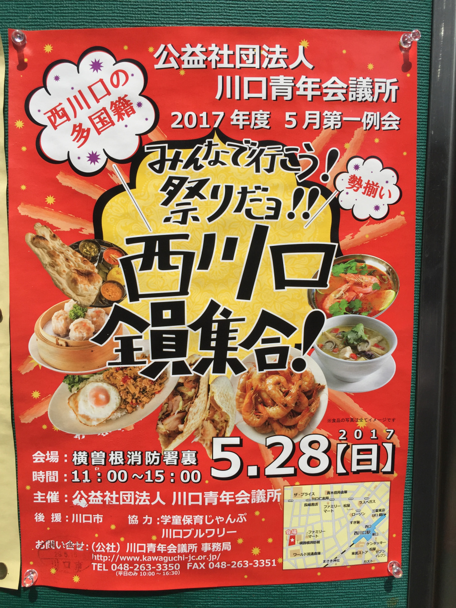 この度 5月28日(日)に西口で多国籍料理のお祭りが開催されるそうです。