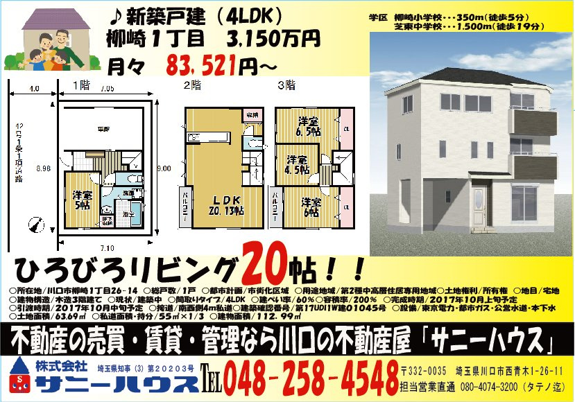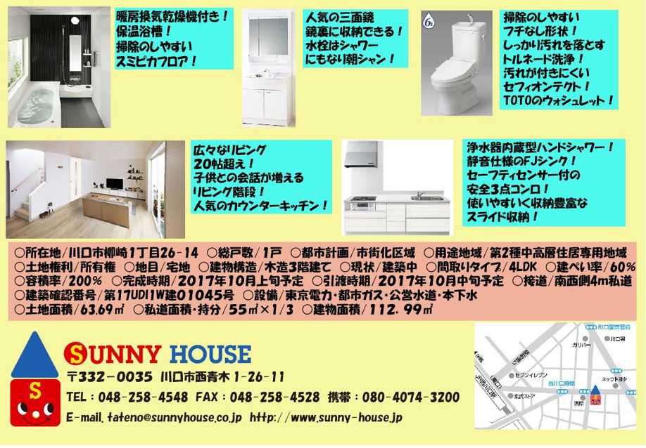 株式会社サニーハウスTOP > 株式会社サニーハウスのスタッフブログ記事一覧 > 川口市柳崎新築一戸建♪
