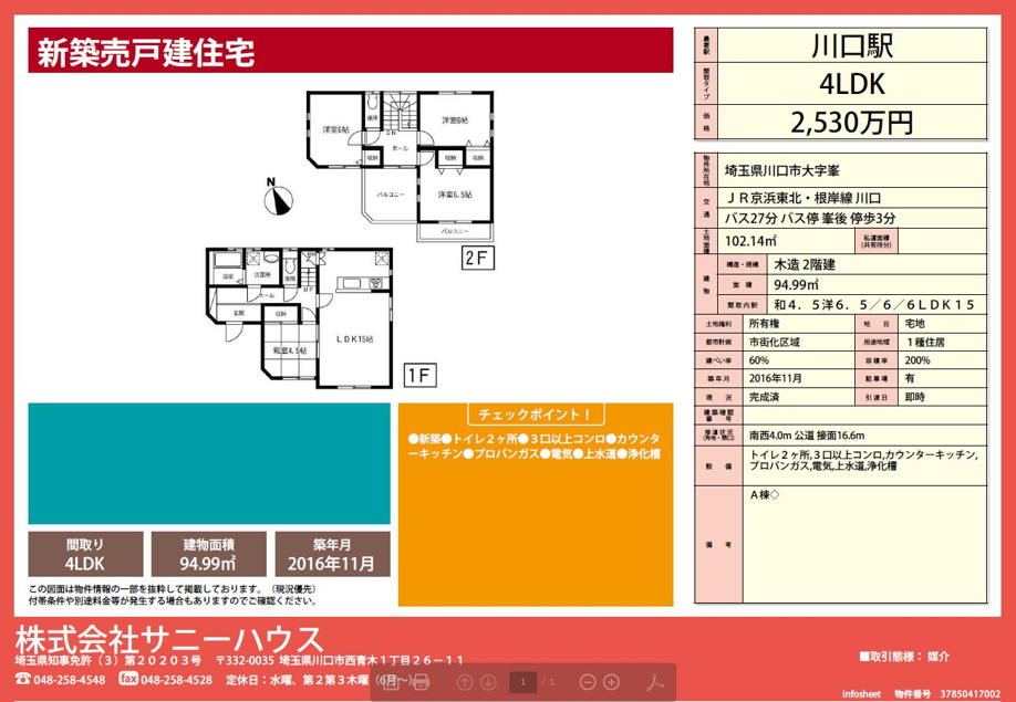 川口市峯の新築パートⅡ|西川口駅周辺の株式会社サニーハウス